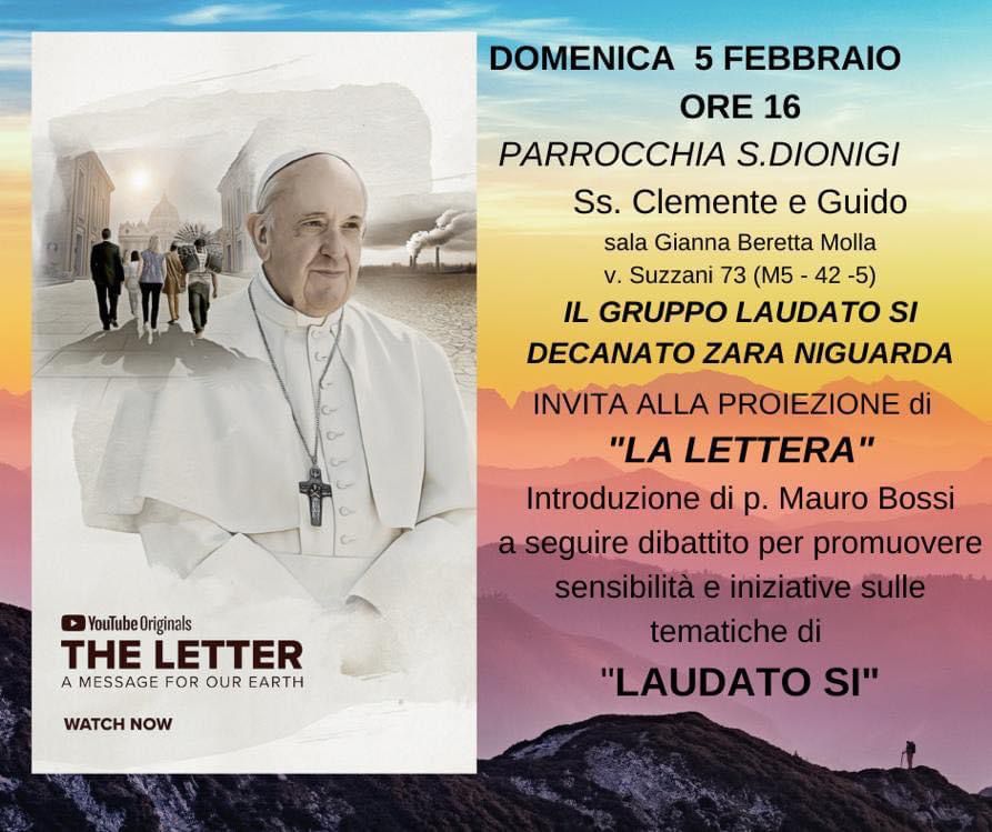 In contemporanea, la parrocchia vicina di Prato Centenaro, ospiterà un incontro decanale con la proiezione del Docufilm “The Letter” basato sull’Enciclica Laudato Si’, con cui il Papa invita ad impegnarsi come credenti e come cittadini per ascoltare la voce di Dio, ascoltare il grido dei poveri ed ascoltare il grido della nostra “casa comune” che soffre. Qui la locandina dell’evento.