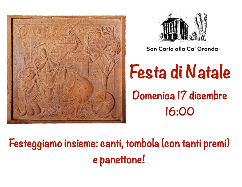 Sempre domenica 17, alle ore 16 nel salone dell’Oratorio, siete tutti invitati per un momento di festa in preparazione al Natale con canti, panettone e tombola! Vi aspettiamo numerosi!
