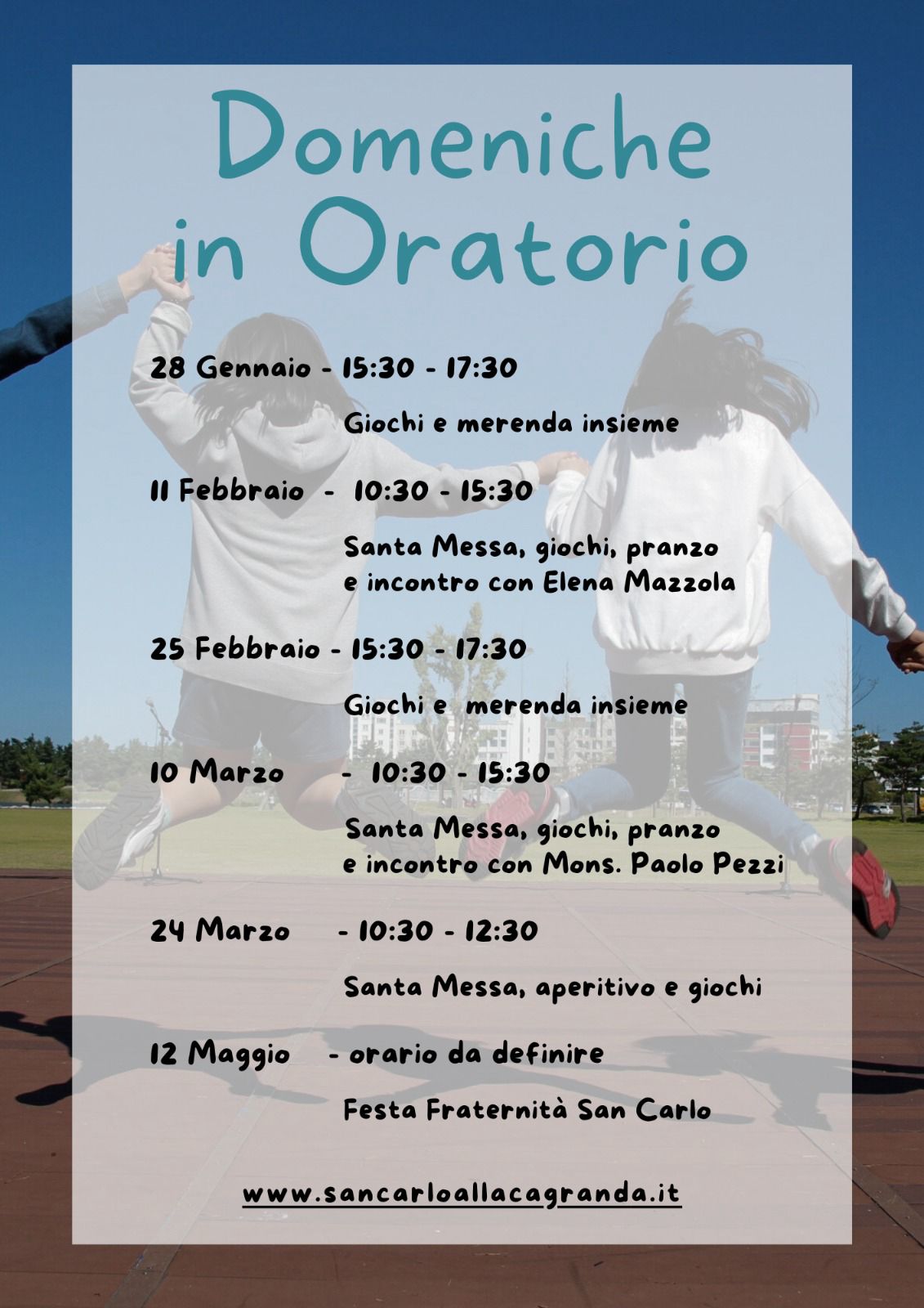 vi ricordo domenica prossima (11 febbraio) il Pranzo Comunitario. Ecco il programma: