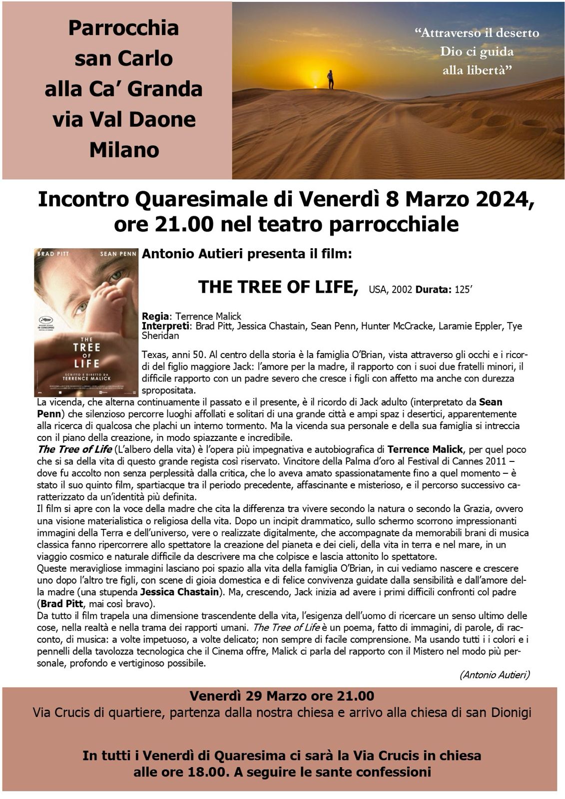 Vi ricordo il nostro secondo quaresimale venerdì prossimo, 8 marzo alle 21:00, Antonio Autieri presenta il film The Tree of Life. Scarica qui la locandina dell’evento.