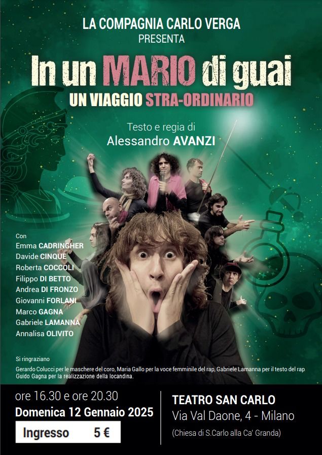 Domenica 12 gennaio la compagnia teatrale Carlo Verga farà nel nostro teatro una doppia replica del loro spettacolo alle ore 16:30 e alle 20:30. Clicca qui per scaricare la locandina.