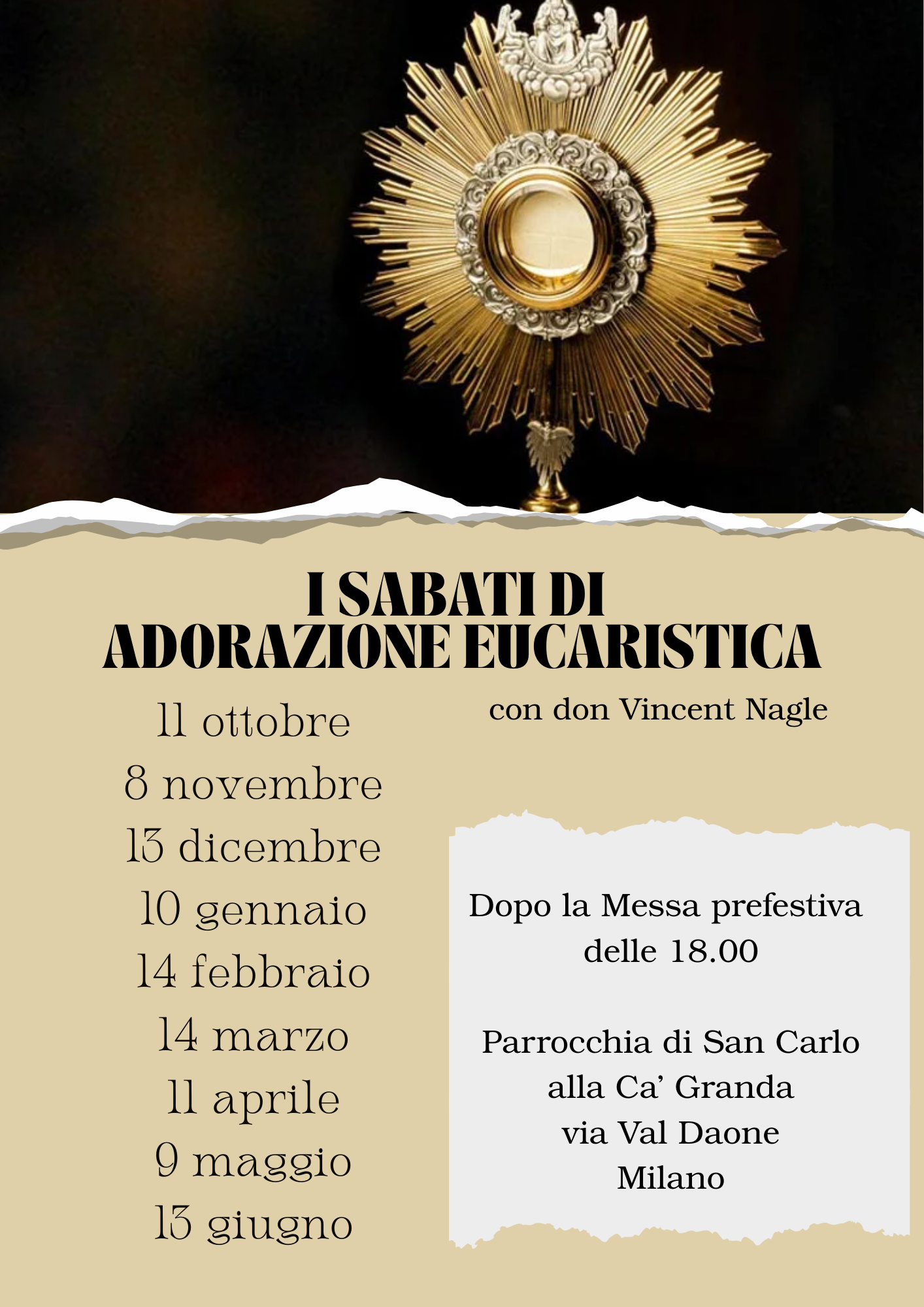Sabato 11 ottobre riprendono «I Sabati di Adorazione Eucaristica» con don Vincent,